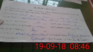| Monitoring Date: 19-09-2018 | Start Time: 19-09-2018 08:21 AM | End Time: 19-09-2018 08:49 AM | Name of MEA: Kh**** Ta**** | |