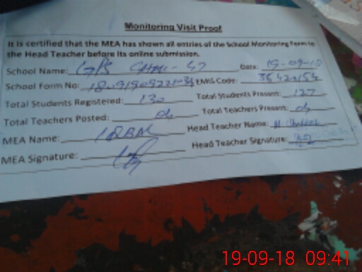 | Attendance Register | Head Teacher | MEA with School | Visit Proof |