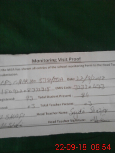 | Attendance Register | Head Teacher | MEA with School | Visit Proof |