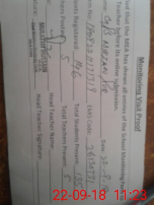 | Certified that this School was Inspected by the Undersigned MEA/DMO Today and the Information Stated Above is as Per Record. | |||||