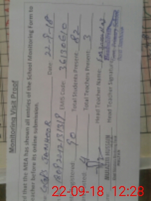| Attendance Register | Head Teacher | MEA with School | Visit Proof |