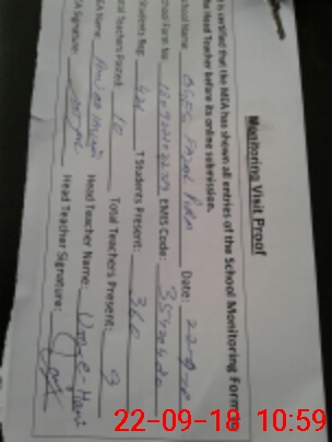 | Attendance Register | Head Teacher | MEA with School | Visit Proof |