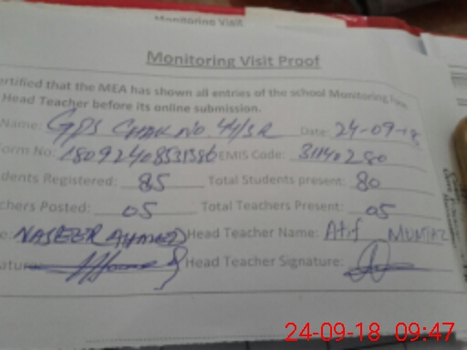 | Certified that this School was Inspected by the Undersigned MEA/DMO Today and the Information Stated Above is as Per Record. | |||||