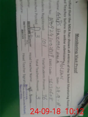 | Certified that this School was Inspected by the Undersigned MEA/DMO Today and the Information Stated Above is as Per Record. | |||||