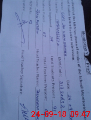 | Attendance Register | Head Teacher | MEA with School | Visit Proof |