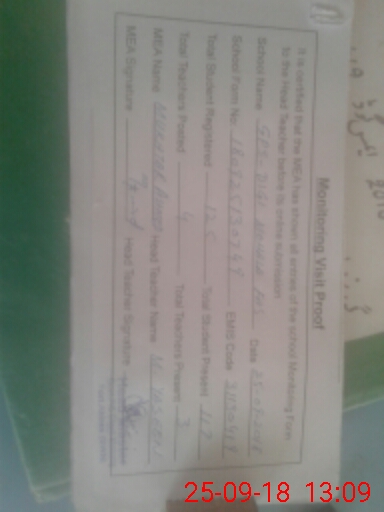 | Certified that this School was Inspected by the Undersigned MEA/DMO Today and the Information Stated Above is as Per Record. | |||||