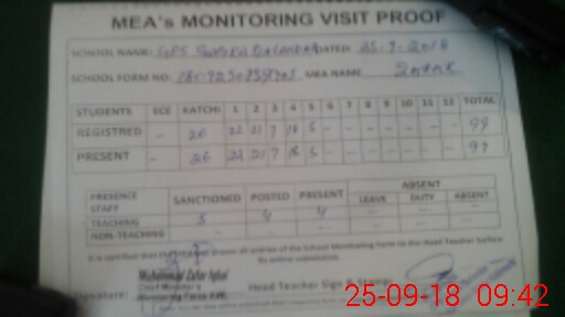 | Attendance Register | Head Teacher | MEA with School | Visit Proof |