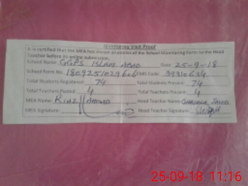 | EMIS Code: 39310634 | Name of School: GGPS ISLAM ABAD | |||