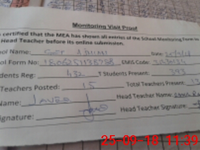 | Attendance Register | Head Teacher | MEA with School | Visit Proof |