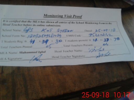 | EMIS Code: 35420242 | Name of School: GPS KOT SAYIDAN | |||