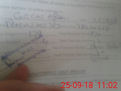 | Attendance Register | Head Teacher | MEA with School | Visit Proof |