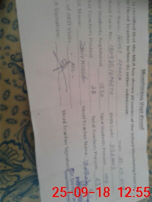 | Monitoring Date: 25-09-2018 | Start Time: 25-09-2018 12:06 PM | End Time: 25-09-2018 12:59 PM | Name of MEA: Za**** Hu**** | |