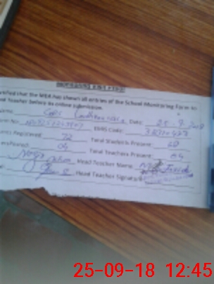 | Attendance Register | Head Teacher | MEA with School | Visit Proof |
