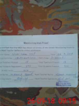 | Certified that this School was Inspected by the Undersigned MEA/DMO Today and the Information Stated Above is as Per Record. | |||||