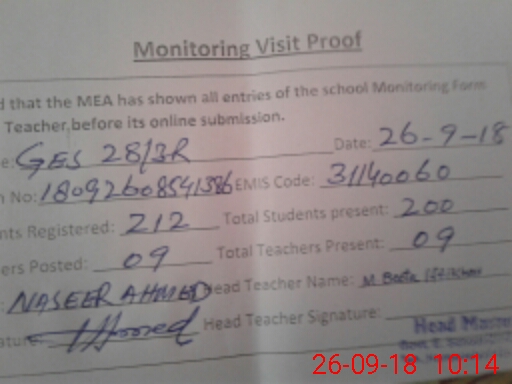| Attendance Register | Head Teacher | MEA with School | Visit Proof |