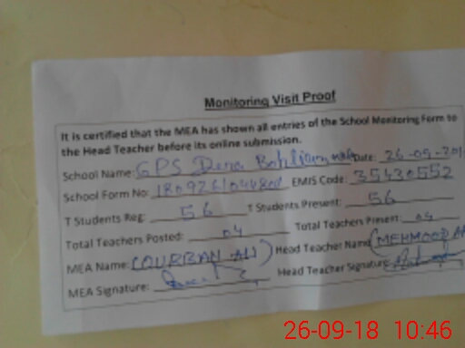 | EMIS Code: 35430552 | Name of School: GPS DERA BOHLIAN WALA | |||
