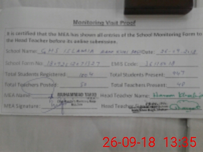 | EMIS Code: 36110018 | Name of School: GHS ISLAMIA AAM KHAS BAGH MULTAN | |||