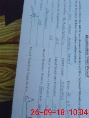 | Monitoring Date: 26-09-2018 | Start Time: 26-09-2018 09:23 AM | End Time: 26-09-2018 10:07 AM | Name of MEA: Za**** Hu**** | |