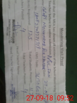| Attendance Register | Head Teacher | MEA with School | Visit Proof |