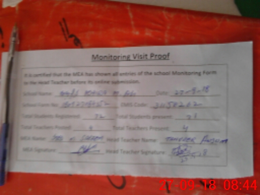 | Attendance Register | Head Teacher | MEA with School | Visit Proof |