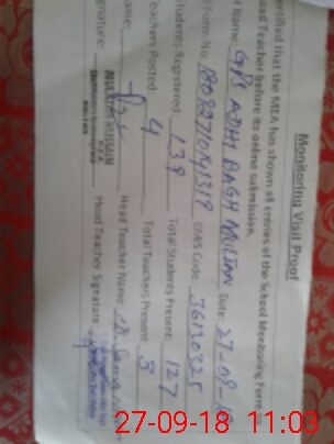 | EMIS Code: 36130325 | Name of School: GPS ADHI BAGH MOZA TARAGARH P/O KHOKHAR | |||