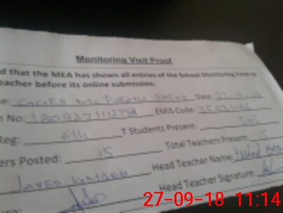 | Attendance Register | Head Teacher | MEA with School | Visit Proof |
