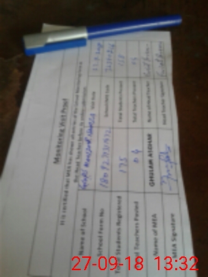 | Certified that this School was Inspected by the Undersigned MEA/DMO Today and the Information Stated Above is as Per Record. | |||||