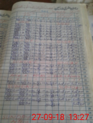 | CNIC | Full Name | Designation | R/C | Absence During Last Calender Month |