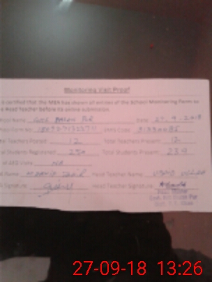 | Attendance Register | Head Teacher | MEA with School | Visit Proof |