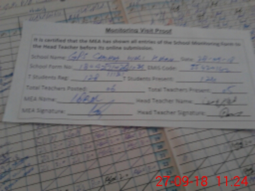 | Attendance Register | Head Teacher | MEA with School | Visit Proof |