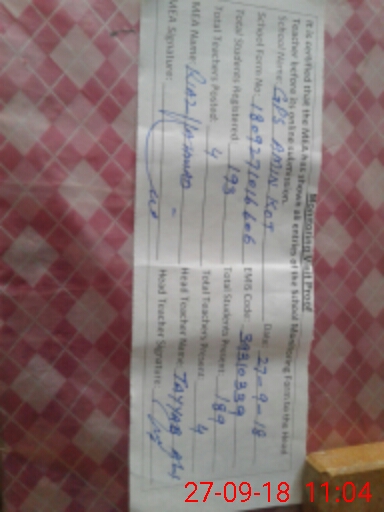 | EMIS Code: 39310339 | Name of School: GPS AMIN KOT | |||