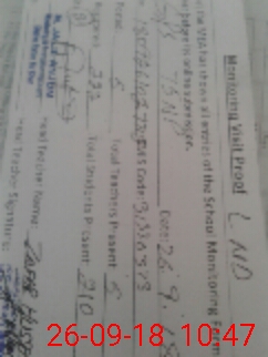 | Monitoring Date: 26-09-2018 | Start Time: 26-09-2018 10:16 AM | End Time: 26-09-2018 10:55 AM | Name of MEA: Mu**** Ja**** An**** | |
