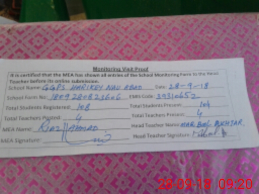 | EMIS Code: 39310652 | Name of School: GGPS HARIKEY NAU ABAD | |||