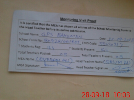 | EMIS Code: 35430317 | Name of School: GPS BAHUMAN | |||