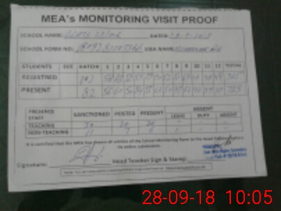 | Attendance Register | Head Teacher | MEA with School | Visit Proof |