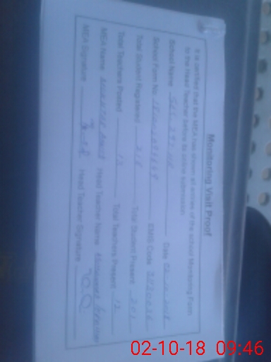 | Certified that this School was Inspected by the Undersigned MEA/DMO Today and the Information Stated Above is as Per Record. | |||||