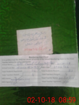 | Certified that this School was Inspected by the Undersigned MEA/DMO Today and the Information Stated Above is as Per Record. | |||||