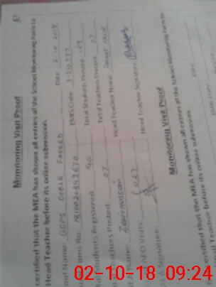 | Attendance Register | Head Teacher | MEA with School | Visit Proof |