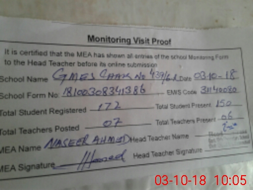 | EMIS Code: 31140080 | Name of School: GMES CHAK NO. 439/6-R | |||