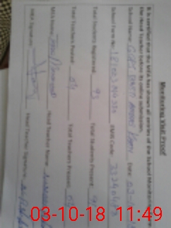 | Attendance Register | Head Teacher | MEA with School | Visit Proof |
