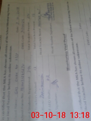 | Certified that this School was Inspected by the Undersigned MEA/DMO Today and the Information Stated Above is as Per Record. | |||||