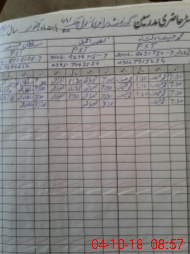 | Name: Sh**** Al**** Designation: (School Headmaster's/Headmistress's) PST Phone/Cell Number: 03**** |