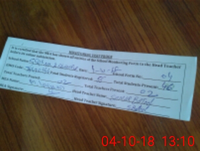 | Attendance Register | Head Teacher | MEA with School | Visit Proof |