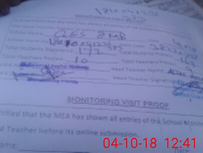 | Attendance Register | Head Teacher | MEA with School | Visit Proof |