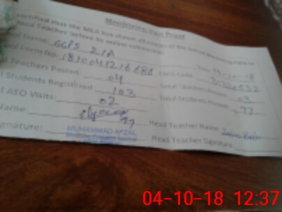 | Name: IM**** PA**** Designation: (School Headmaster's/Headmistress's) PST Phone/Cell Number: 03**** |