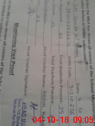 | Certified that this School was Inspected by the Undersigned MEA/DMO Today and the Information Stated Above is as Per Record. | |||||
