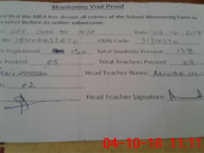| Attendance Register | Head Teacher | MEA with School | Visit Proof |