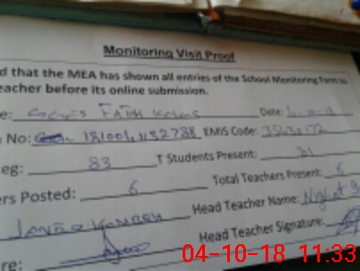 | Attendance Register | Head Teacher | MEA with School | Visit Proof |