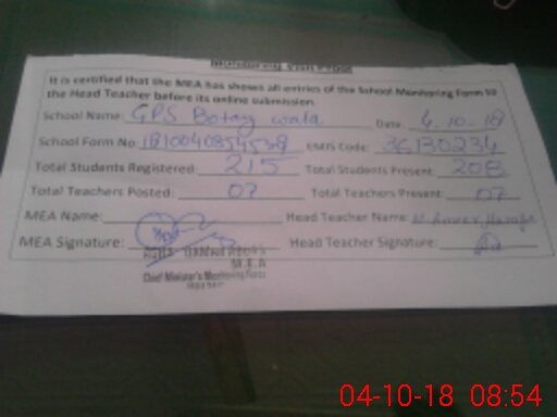 | EMIS Code: 36130234 | Name of School: GES BOTAY WALA P/ O GULZAR PUR | |||