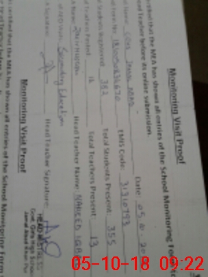 | Attendance Register | Head Teacher | MEA with School | Visit Proof |